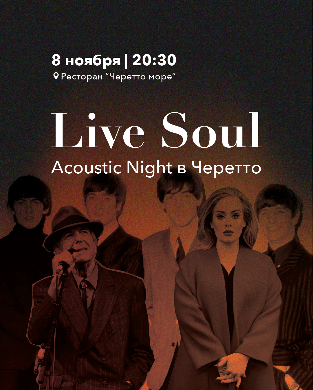В этот вечер звучит живая акустика от группы Cover Avenue: знакомые мелодии, мягкий свет, вино и то самое чувство, когда время будто останавливается.